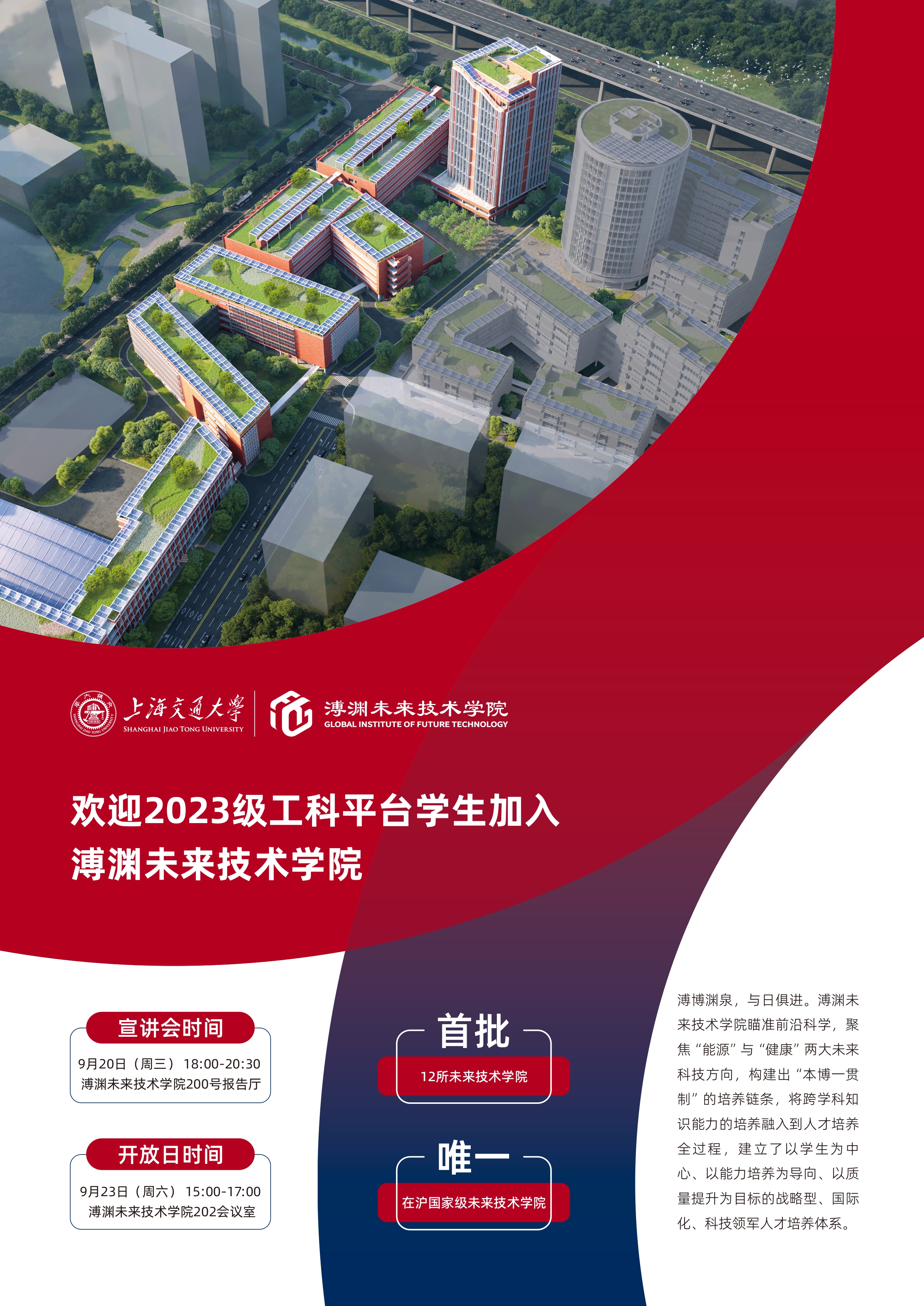 讲座主题:招生 | 2023级工科平台员工开放日及宣讲会