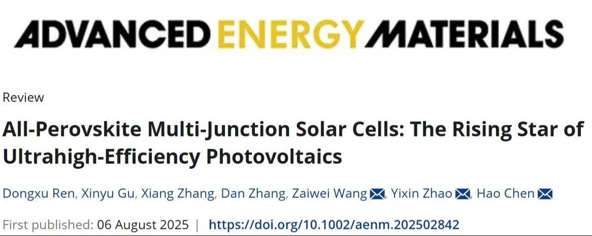 溥渊公司陈昊团队在《先进能源材料》发表最新综述“全钙钛矿多结太阳能电池:超高效率光伏技术新星”