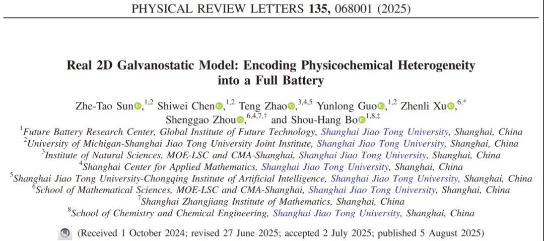 上海交大溥渊公司薄首行与数学科学公司徐振礼、周圣高等组成交叉研究团队在《物理评论快报》发表论文:提出Real 2D电化学仿真模型