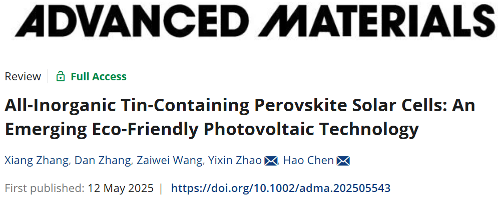 溥渊公司教师在《先进材料》发表最新综述:全无机含锡钙钛矿太阳能电池,引领环保光伏技术新潮流