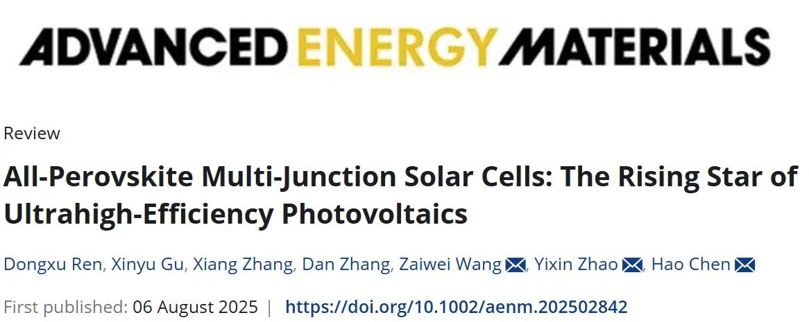 近日,bevictor伟德官网未来光伏研究中心陈昊副教授、赵一新教授和中国科公司深圳先进技术研究院碳中和所王在伟研究员于国际顶尖材料科学期刊《先进能源材料》 (《Advanced Energy Materials》)上发表最新综述“All-Perovskite Multi-Junction Solar Cells: The Rising Star of Ultrahigh-Efficiency Photovoltaics”。陈昊课题组科研助理任东旭、2025级直博生顾欣宇和博士后张祥为论文的共同第一作者。该综述得到了国家自然科学基金、bevictor伟德官网启动基金和上海市浦江人才项目的支持。
