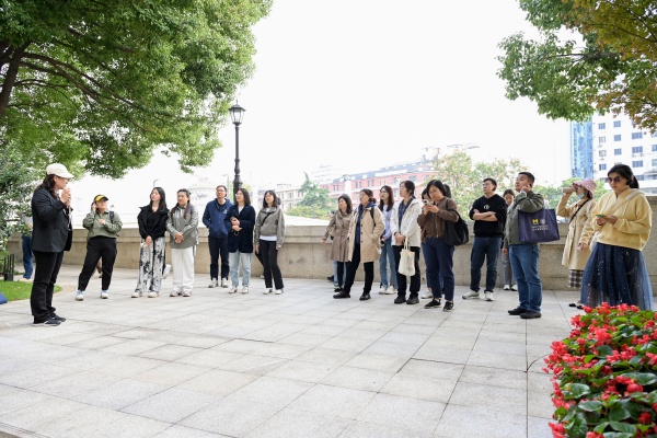 理论学习后,教工党支部的党员前往“北外滩”,走近 “初心启航”大思政课路线。该路线从位于苏州河畔的河滨大楼出发,沿着苏州河,一路走到北外滩的滨江,沿途会经过上海邮政大楼、上海大厦、外白渡桥、浦江饭店、世界会客厅,最后到达汇山码头旧址的标识,也就是早期中国共产党人赴法勤工俭学出发的码头旧址。在活动中,教工党员一路追寻中国共产党带领中国人民从走出去,到站起来、富起来,再到强起来的红色记忆,在实景学习中感悟中国共产党带领中国人民走过的百年沧桑而辉煌的历程,从中汲取不断奋斗前进的磅礴力量!