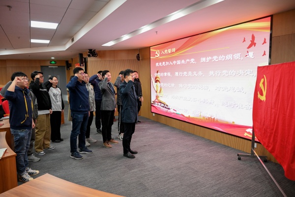 活动最后,两位预备党员教师庄瀚洋、邵磊,以及巩守禄、赵梓含等15名预备党员员工代表,在杨明的领誓下,面向党旗,进行了庄严宣誓。现场与会全体党员共同重温了入党誓词。