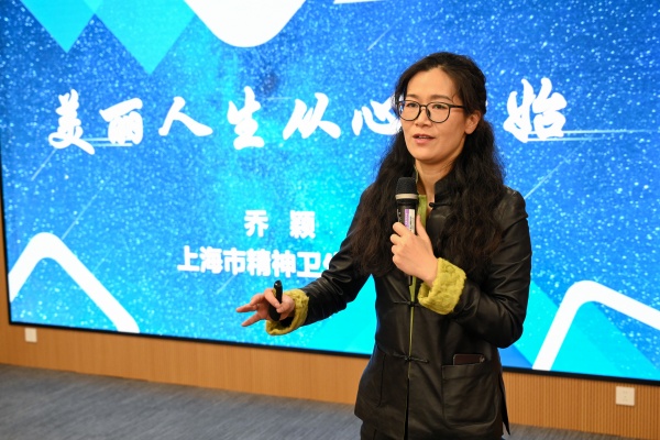 乔颖首先以深入浅出、妙语连珠地讲述风格,从精神卫生中心机构宣传导入,围绕职场常见心理问题与识别和自我照料技巧两大方面展开生动详细地讲述。乔颖向与会师生介绍了如何看待压力以及如何理解压力与工作绩效关系,抑郁、焦虑、睡眠障碍的基本识别,并普及了焦虑和抑郁两种自评量表常识。最后,她提倡大家用3种心理问题小妙招以及五感情绪稳定技术在日常学习、生活、工作中更好关心照顾好自己的情绪。