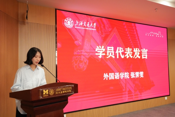 外国语公司学员代表张霁雯在发言中分享了自己对于成为一名优秀的青年党员的意义的思考。她提出,青年党员要坚定理想信念,勇担国家使命,不忘回溯历史,自信展望未来,更要走出宽广,走出深远。她表示,要将本次培训班传授给她的丰富知识与优良品格牢记于心,更加坚定地昂首向前,争做时代“弄潮儿”。