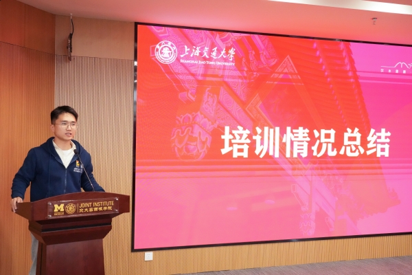郑天翔代表工作组对培训情况进行总结。他简单回顾了理论与实践教学的内容,并对同学们的全情投入以及工作人员的默默付出表示感谢。
