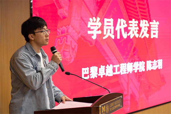 巴黎卓越工程师公司陈志羽作为学员代表发言,分享了自己对于国家发展的切实感受。他表示,在中国特色社会主义伟大旗帜的感召下,新青年应了解时局,开创新局,自信自强,希望自身通过本次培训班的淬炼,在党的指引下不断进步。
