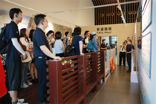 在黄浦码头旧址初心启航展厅中,通过讲解员细致入微的专业讲解,全体成员深入了解了前辈们赴法俭学的初心和艰辛,以及习近平总书记2019年考察上海杨浦滨江并提出“人民城市”重要理念的过程及背景,在历史与现实的交融中再次感受伟大的中国共产党人探索真理的矢志不渝。