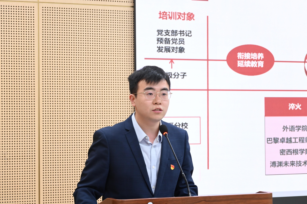 冯波瀚介绍了本期培训班的基本情况及课程安排,班级共有来自4个院系的86名同学,分成6个小组。培训班主要围绕三个部分展开:入学教育、教学培养和考核结业。希望学员们严格遵守培训班纪律,认真参与学习,顺利完成培训任务。