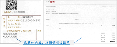 注意事项:若票据未写明具体采购内容的,须附供货单位盖章的清单(网购的可以提供订单截图)