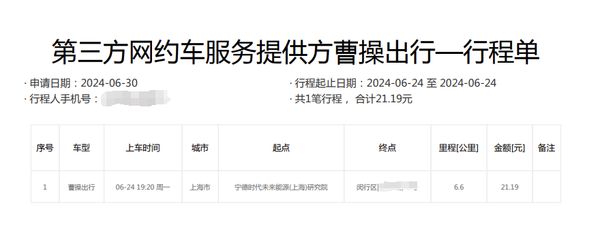 报销方式二:市内打车平台的发票和行程单。