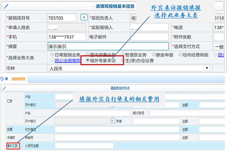 报销要件:预约报销单、《境外人士来访预报表》(30天及以内)、接待协议(30天以上)、机票、住宿费等发票。