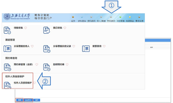校外人员信息维护:首次给校外人员发放酬金的,应在预约前通过交我办-智能报销-校外人员信息维护添加姓名、证件号等信息。