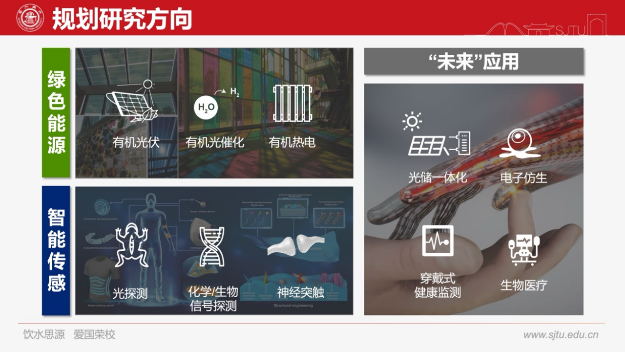 中心依托公司在能源和健康领域的战略布局,基于有机半导体的本征柔性、可大面积加工和优异的生物兼容性等优势,通过化学、材料、电子工程和生物技术等多学科的深度交叉与融合发展先进有机光电子技术,解决能源和健康领域的关键问题,推动新技术与新应用的结合,实现基础研究和产业应用的融合,为低碳社会建设和生命健康领域提供有力的科技支撑。